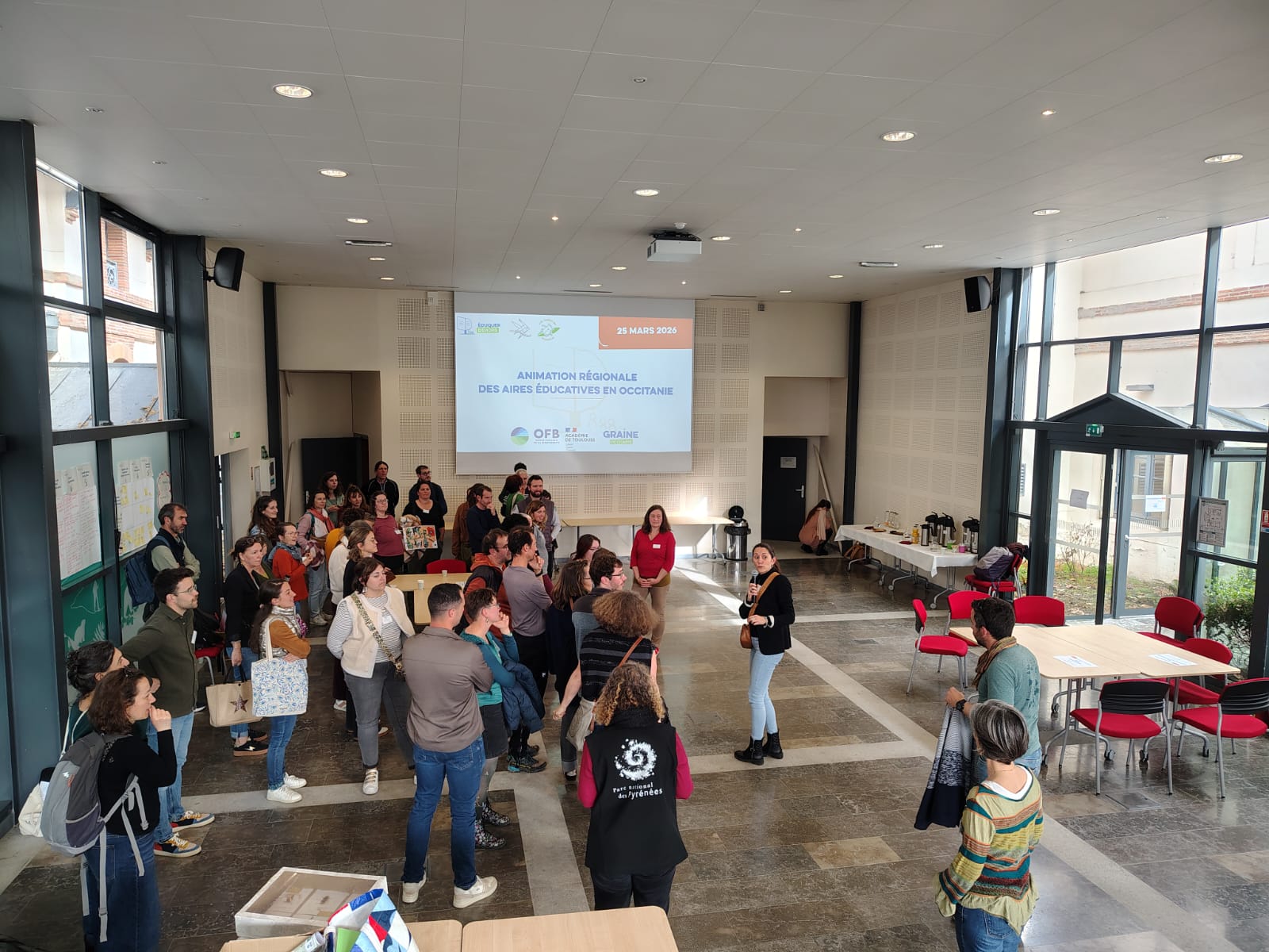 65 personnes se sont retrouvées le 25 mars dans les locaux de la Maison du Parc national des Pyrénées à Tarbes. Enseignants, éducateurs, partenaires, chargés de mission, conseillers pédagogiques… ont pu prendre du recul sur leurs pratiques pédagogiques, échanger et s'inspirer, quel que soit leur niveau d’expérience sur ce dispositif.
